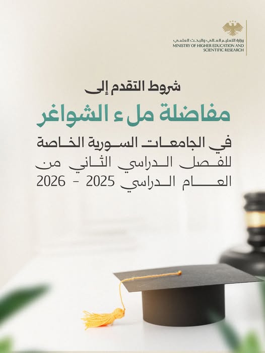 تعلن وزارة التعليم العالي عن إطلاق رابط تطبيق المفاضلة للعام الدراسي 2025 – 2026